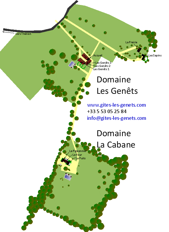 Le Domaine Les Genêts et le Domaine La Cabane sont situés à Thenon en Dordogne à mi-distance entre Périgueux et Brive.