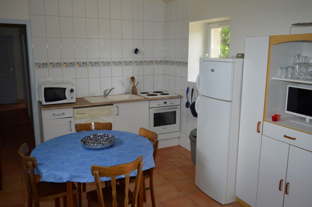 Cuisine équipée (micro-ondes, lave-linge, frigo/congélateur, plaque 4 feux)